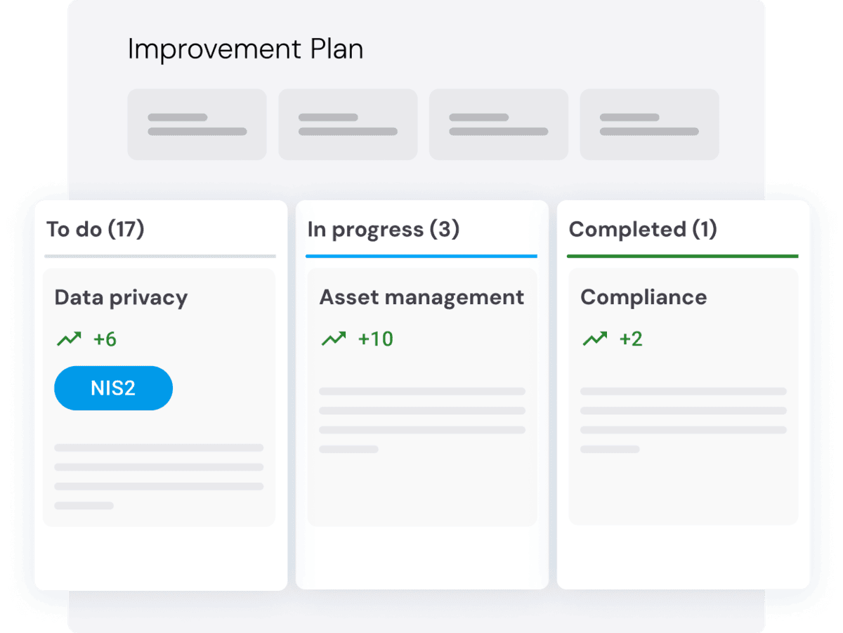Easily sort action items by topic like NIS2 requirements, and see exactly which ones will have the biggest impact. Improvement plans adapt to your unique needs, helping you collaborate effectively with your vendors and take meaningful steps to reduce risk—not just identify it. With third-party cyber risk management, visibility is the first step, but real security comes from mitigation.